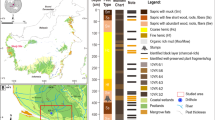 Peat samples for composition analysis were sieved through a 125 µm sieve using a spray of deionised water. The material retained on the sieve was then analysed for peat components and macrofossils following a standard protocol81. Samples were placed in a petri dish and scanned using a low power (×10–×50) stereo-zoom microscope with a 10 × 10 square grid graticule inserted into one of the eyepieces. The petri dish was moved randomly to 15 different views, plant macrofossil types were estimated as percentages for each view using the graticule, and the results were averaged to represent the whole sample. High power (×200–×400) microscopy was used to confirm identifications. Subsamples of plant macrofossil material were mounted on microscope slides (temporary preparations using water as a mountant) and identified at ×100–×400 magnification. The samples were categorised into broad composition types (Sphagnum peat, sedge peat, Sphagnum and sedge peat, wood and root peat, and humified peat). To avoid bias, the composition analysis was undertaken without knowledge of the sample origins.