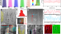 To obtain a statistical analysis of the GBs present in H-Au NAs, we have employed four-dimensional scanning-transmission electron microscopy (4D-STEM) (Fig. 1c–e, Supplementary Figs. S11–14)34. Among ~600 GBs, H-Au NAs contain ~7% LAGBs and ~93% high-angle GBs (HAGBs), including 31% Σ3 GBs along with other CSL GBs (Fig. 1e). Although a trace number of Au NPs possess low-energy Σ3 GBs (Supplementary Fig. S15), the vast majority of them are found to be free of GBs (Supplementary Fig. S16), implying that most of the GB defects are formed during the assembly process. Therefore, the GB density of Au NPs is set to 0 µm−1 in the follow up discussion. During the collision event between two NPs initially randomly oriented, they can reorient to lower energy orientations33, explaining why lower energy GBs (i.e., Σ3) are more frequently observed. As the assemblies grow there are lower degrees of freedom left, and higher energy HAGBs form as well. Beyond GBs, H-Au NAs contain stacking faults and dislocations (Fig. 1b), which can be remnants of the rotation process of multiple NPs merging33.