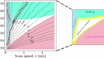 Both 1080 and 1040 steels were produced in a SLM125HL laser powder-bed-fusion 3D-priting system (SLM Solutions Group AG). The machine is equipped with an ytterbium fiber laser with a wavelength of 1.06 μm and a maximum power of 400 W. Samples were built onto a 316 L steel platform preheated to 200 °C and the building process was performed under an inert and high purity (≥99.99%) argon atmosphere, maintaining an oxygen concentration below 0.05 vol.%. A series of 10 mm × 10 mm × 10 mm cubic samples were fabricated at different processing parameters, listed in Supplementary Table 1, for evaluating the 3D-printability of each steel. These variables were integrated into the volumetric energy density (E, J/mm3), with \(E=\frac{P}{{vht}}\) for easier comparison, as listed in Supplementary Table 2. After optimization of the processing window, selected processing parameter sets were also used to fabricated large-sized samples for testing tensile properties, Charpy impact toughness, and hardness distribution as detailed in the following sections.