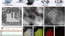 According to the prior experimental results and calculated Pourbaix diagram15,16,17,18, the over-oxidation of RuO2 into soluble high-valence H2RuO5 species (RuO52– ion) at high anodic potentials has been widely recognized as the primary mechanism of RuO2 degradation. Currently, there are generally two classes of strategies to extend the operating life of RuO2. One aims at improving the OER activity to lower the required overpotential for the catalyst at a specific current density; a diverse range of methods, such as strain engineering11,19,20,21, defect engineering22,23,24,25, doping engineering9,14,26,27,28,29,30,31, and heterostructure engineering32,33,34, have been explored to optimize the adsorption energy between the modified RuO2 and oxygenated intermediates, thus improving the OER activity. Another strategy is to introduce electron-donating dopants to lower the Ru oxidation state and suppress the dissolution12,31,35,36,37,38. For example, Qiao et al. reported a dynamic electron accepting–donating process on Re-doped RuO2 catalyst, in which the Re dopant could accept electrons to activate the Ru site at low potentials, and then donate electrons back to prevent RuO2 from over-oxidation at high potentials35. However, the introduction of additional elements into RuO2 lattice increases the risk of forming coordinatively unsaturated Ru sites, leading to the demetallation of surface Ru sites and thus the deteriorated stability39,40,41. Therefore, it is highly desired to develop new strategies to improve the durability of Ru-based OER catalysts.