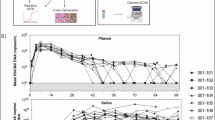 CD4 + and CD8 + T cell responses were measured in PBMC by flow cytometric intracellular cytokine staining (ICS) as described in detail previously42. Frozen PBMCs were rapidly thawed at 37 °C and washed with R10-media (RPMI 1640 medium, Thermo Fisher Scientific) supplemented with 10% Newborn Calf Serum (Gibco), 2 mM l-glutamine (Thermo Fisher Scientific), 100 µ/ml penicillin (Invitrogen), 100 µg/ml streptomycin (Invitrogen), 50 µM βME (Thermo Fisher Scientific) before cells were combined with anti-CD28 (CD28.2, Purified 500 ng/test: eBioscience), anti-CD49d mAb (9F10, Purified 500 ng/test: eBioscience), and test antigen then incubated for 1 h at 37 °C before the addition of Brefeldin A, followed by an additional 8 h incubation. Co-stimulation without antigen served as a negative control. Cells were then stained with the following fluorochrome conjugated antibodies: anti-CD3 (SP34–2, Pacific Blue; BD Biosciences), anti-CD8 (SK1, PerCP-eFluor710; Life Tech), anti-CD4 (L200, BV510; BD Biosciences), anti-CD69 (FN50, PE-TexasRed, BD Biosciences), anti-IFNγ (B27, APC; BD Biosciences), anti-TNFα (MAb11, PE; BD Biosciences), and Ki67 (B56; FITC, BD Biosciences). T cell responses to SIV 5’Pol were measured by ICS using a mix of sequential 15-mer peptides (11 amino acid overlap). Stained samples were analyzed on an LSR-II or FACSymphony A5 flow cytometer (BD Biosciences) and analyzed using FlowJo 10 software (BD Biosciences). In all analyses, gating on the lymphocyte population was followed by the separation of the CD3 + T cell subset and progressive gating on CD4 + and CD8 + T cell subsets. The gating strategy is shown in Supplementary Fig. S10. Antigen-responding cells in both CD4 + and CD8 + T cell populations were determined by their intracellular expression of CD69 and either or both of the cytokines IFN-γ and TNF-α. The assay limit of detection was determined with 0.05% after background subtraction being the minimum threshold used in this study. After background subtraction, the raw response frequencies above the assay limit of detection were “memory-corrected” (i.e., percent responding out of the memory population), as previously described42.