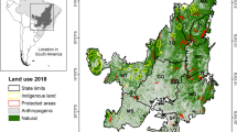 Effective governance for biodiversity in areas such as the Cerrado, where a multitude of social-ecological systems coexist, needs to draw on assessments that best capture the dynamics of their different biophysical components and socioeconomic histories and should contribute to targeted actions for those regions. As an example, the consistently high impacts on biodiversity captured at all scales by cSAR and SHI in south Goiás (mesoregion 47, see Supplementary Fig. 1) is a striking result of historical LU processes in the state, which—due to a mixture of national and international incentives and biophysical characteristics favourable to the technological packages within Brazil’s Green Revolution—already had 50% of its extent converted to agriculture by 198630,31. The localised information supplied by the application of such biodiversity indicators can support, for example, the enforcement of the Brazilian Forest Code through spatial planning for restoration focused on priority areas for biodiversity. The Forest Code establishes areas of natural vegetation under permanent protection and legal reserves in rural properties and for which Goiás state had a vegetation deficit of 14,467 km² by 201732.