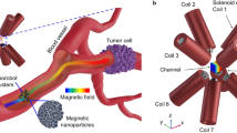 The dependence of the turning time \(\tau\) on the initial orientation \(\alpha\) is an important component of the proposed strategy. In Fig. 2C, we show snapshots of the turning of the nanobots upon application of the experimental drive for two initial orientations α = 70° and α = 30°, shown in the top and bottom panels, respectively. The variation of \(\tau\) on \(\alpha\) from multiple experiments is shown in Fig. 2B. Also shown are the results of the numerical calculations following the theoretical framework developed previously33,34, which matches closely with the experiments. Please see the materials and methods section for more details on the fabrication steps, experimental procedure, and numerical calculations. The experimental demonstration of this dynamical behavior of nanobot is available in Supplementary Movie 1; please refer to the supplementary information for further details. Note the value \(\tau\) in our experiments varied between 0.5 and 1.5 s, which in turn depends on the details of the system, such as the dimensions and magnetic properties of the nanobots.