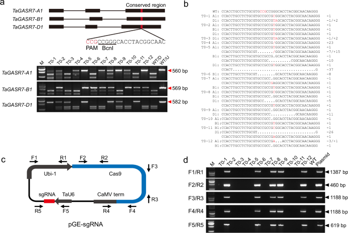 In the version of the article initially published, in the top panel of Fig. 2a, the lower label “TaGASR7-B1” should have read “TaGASR7-D1”, as shown in Fig. 2 below. This notice serves to correct the figure.