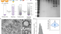 Isolation of vesicles was done according to Stentz et al.81 (workflow see Supplementary Fig. S1). In brief, a filtration cassette (Vivaflow 50R, 100,000 MWCO, Hydrostat, model VF05H4, Sartorius or Vivaflow 200 100,00 MWCO, PES, model VF20P4, Sartorius) was used to concentrate 1 L of sample down to approx. 5 ml. Then, 500 ml PBS buffer (pH 7.4) was added for washing purposes, and the liquid was concentrated to 1-4 ml. The sample was then centrifuged for 20 min at 10,000 × g, 4 °C to remove protein and lipid aggregates. Next, the sample was transferred to Pierce™ Protein Concentrators (PES, 100,000 MWCO, Thermo Scientific) and centrifuged at 3000 × g, 4 °C until the samples were concentrated down to 1 ml. Residual contaminants and proteins were further eliminated through size exclusion chromatography (SEC) using an IZON qEV1 column (pore size 35 mm) according to the manufacturer’s instructions. The vesicles were eluted in the 2.8 ml fraction containing the purified extracellular vesicles underwent a final filter sterilization using a 0.22 µm syringe filter (ROTILABO® PES), and were subsequently stored at 4 °C until further use.
