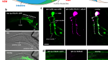 The Ahringer or ORFeome C. elegans RNAi-feeding library was utilized for obtaining RNAi-feeding bacteria. The RNAi plasmids were verified for the correct target sequence. NGM RNAi plates were prepared by supplementing with 100 µg/ml ampicillin and 4 mM β-D-isothiogalactopyranoside (IPTG). RNAi bacteria were cultured overnight at 37 °C in LB media supplemented with 100 µg/ml ampicillin and 12.5 µg/ml tetracycline for the primary culture. The secondary cultures were initiated with a 1/100th volume of the primary culture supplemented with 100 µg/ml ampicillin and left to incubate at 37 °C until the OD600 of 0.6 was attained. The bacterial pellets were then resuspended in 1/10th volume of 1XM9 buffer, consisting of 100 µg/ml ampicillin and 1 mM IPTG. Approximately 300 µl of bacterial suspension was spread on NGM RNAi plates and left to dry for one day. Worms were exposed to RNAi plates from L1 onwards. Late L4 stage worms were transferred to freshly seeded RNAi plates to knock down genes expressed in the neurons.