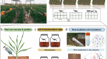 All statistical analyses and plots were generated with R and GraphPad Prism 8.0.0, unless otherwise noted. Data normality was checked by the Shapiro–Wilk test or Kolmogorov-Smirnov test in GraphPad Prism 8.0.0. One-way and two-way ANOVA in conjunction with post hoc Tukey’s or Fisher’s LSD test, or one-sided t-test were used for normally distributed data. In contrast, the Kruskal–Walli’s test, Mann–Whitney test, or Scheirer–Ray–Hare test, followed by a Dunn’s post-test correction, were employed for non-normally distributed data. A P value of < 0.05 was considered statistically significant. Three alpha diversity indexes, including species richness, Shannon index, and Faith’s phylogenetic diversity (Faith’s PD) were calculated using the vegan and picante packages63,64. Beta diversity indexes were calculated using QIIME2-2020.839. We performed a non-metric multidimensional scaling (NMDS) ordination of Bray–Curtis distance matrices to reveal the microbial community structure. The effects of N fertilization, decomposition time, and decomposition rate on microbial beta-diversity were assessed by a permutational multivariate analysis of variance (Adonis) in the vegan package. We performed the fast expectation-maximization microbial source tracking (FEAST) method to determine the potential origin of the wheat residue-inhabiting microbiota65. The difference in microbial absolute abundance was assessed by a nonparametric test. We used the DESeq2 package to identify CAZymes showing a significant difference in abundance between the N0 and N2 regimes66. The linear discriminant analysis (LDA) effect size (LEfSe) algorithm was performed to screen for biomarkers (i.e., OTUs) along longitudinal trends. Biomarkers identified from the LEfSe analysis were used to match subsequent isolates.
