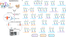 After transfection, cells were cultured for 96 h in Free-style F17 medium supplemented with GlutaMAX and Geneticin (Thermo Fisher Scientific). IgG1 was purified using protein A chromatography, with 20 mM sodium phosphate buffer pH 7.0 used as a binding buffer and 100 mM sodium citrate buffer pH 3.0 as elution buffer. The fractions were neutralized with 1 M Tris pH 9.0. SDS-PAGE was used to identify fractions which contained IgG1. These were subsequently pooled, concentrated and analyzed by LC-MS. Heterodimeric IgGs were obtained from co-expression of the following heterodimeric platform and the mutations on one heavy chain are based on the knobs-into-holes (KiH) strategy31 in which Protomer A contains mutations T366S/L368A/Y407V/A330W (−5Da) and Protomer B only mutation T366W ( + 85 Da). List of protein constructs expressed is included in Supplementary Table 4.