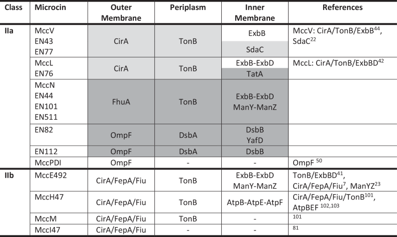Table 1 Proteins involved in class II microcin uptake and antibacterial activity as suggested by BarSeq and confirmed with Keio mutants here and/or identified in previous literature