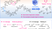 As compared to the Cα–OAr/Cβ–OAr bonds of the benzodioxane unit, scissoring the alkyl “tails of lignin” via the cleavage of the Caryl–Calkyl bond is much more difficult but crucial33,34,53. Therefore, this work paid more attention to the mechanism study of the Caryl–Calkyl bond cleavage, focusing on the reaction route, critical intermediates, and the structure-function relationship of the critical active centers of the catalyst.