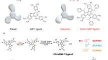 Over 100 crystals from different batches were collected for single-crystal X-ray analysis at 100 K. The unit cell best fits a hexagonal cell: a = b = 14.9799(2) Å, c = 18.3087(3) Å. The resolution is poor; the scattering drops off quickly at 2θ > ca. 23°. A MOF was constructed with the space group P622 using a crystal with a counterclockwise sense: a left (L) arrangement of the principal facets (Fig. 3). The Cd ions are coordinated by six pyridyl ligands and sit on sites of D3 symmetry, corresponding to Wyckoff positions d (1/3, 2/3, 1/2) and (2/3, 1/3, 1/2); the metal sits on a threefold axis24. The crystal has chiral (left-handed) hexagonal channels with a dimension of approximately 7.87 Å.