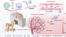 The previous results confirmed that NO-Lip@PAC NMs displayed good chemotaxis behavior in the tumor microenvironment, and the NO generated during this process promoted the degradation of liposomes, leading to the release of PAC NMs. The released PAC NMs can be further chemotactically targeted to mitochondria, and the carboxyl groups on their surface can recruit Ca2+ from the cytoplasm46,47,48, leading to an increase in the local Ca2+ concentration around the mitochondria, and thus inducing their mineralization. To further enhance the effect of mitochondrial mineralization, we also loaded Cur in the lipid hydrophobic region to inhibit Ca2+ efflux49,50,51,52 and constructed NO-Lip@PAC@Cur NMs. We prepared NO-Lip@PAC@Cur NMs with different drug-lipid ratios and tested their encapsulation rate and drug loading to explore the optimal incorporation conditions of Cur. As shown in Supplementary Fig. 49, the encapsulation rate of Cur gradually decreased and the drug loading amount increased with higher drug-lipid ratios. However, its stability decreased and liposomes appeared to agglomerate. On the one hand, this may be due to the low absolute value of the zeta potential (less than 30 mV). On the other hand, excessive Cur insertion into the phospholipid bilayer may disrupt the original tight arrangement of phospholipid molecules, resulting in changes in the fluidity and permeability of the membrane. (Supplementary Fig. 50). Considering this, we chose a drug-lipid ratio of 1:10 for subsequent experiments, achieving an encapsulation rate of 73.8% and a drug loading capacity of 7.6%. The TEM images showed that NO-Lip@PAC@Cur had a diameter of about 500 nm. The hydrated particle size was about 545.0 nm, and the zeta potential was − 14.0 mV (Supplementary Fig. 51). As shown in Supplementary Fig. 52a, b, the DLS and zeta potential of NO-Lip@PAC@Cur NMs remained unchanged within 7 days, with values of 598.8 nm and − 13.9 mV, respectively. Additionally, the optical images in Supplementary Fig. 52c indicate that no significant precipitation was observed in PBS after 7 days of incubation, demonstrating their good stability.