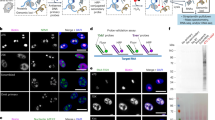 To find out if the enhanced labeling procedure can be used to investigate even smaller RNA-containing compartments, we focused on endogenous C9orf72 transcripts with a C9-ALS/FTD-linked expansion of the G4C2 hexanucleotide repeat in the first intron (Supplementary Fig. 5A). We first characterized the expression of C9orf72 transcripts in induced pluripotent stem cells (iPSCs) derived from a healthy donor (C53) and a C9-ALS patient (DN19V4) containing ~638 copies of the G4C2 repeat in at least one C9orf72 allele60 (Supplementary Fig. 5A–C). In line with earlier studies14,61,62, the total levels of C9orf72 mRNA detected by reverse transcription-quantitative PCR (RT-qPCR) with exon-2- and exon-3-specific primers (MLO3996/MLO3997; Supplementary Fig. 5A) were somewhat lower in DN19V4 than in C53 (Supplementary Fig. 5D). Since the expanded G4C2 repeat has been reported to promote the retention of the first intron in C9orf72 transcripts initiated at the upstream promoter63 (V1 and V3 isoforms in Supplementary Fig. 5A), we included RT-qPCR analyses with primers amplifying the intron-1-exon-2 junction (MLO3994/MLO3995; Supplementary Fig. 5A). This revealed a ~ 6-fold increase in the abundance of intron 1-containing C9orf72 transcripts in DN19V4 compared to C53 (Supplementary Fig. 5E).