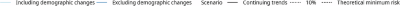 As our base-case scenario, we used projected continuing trends in exposure to risk factors, disease burden, and mortality. For each of the risk factors, we considered two levels of improvement compared to the continuation of recent trends: