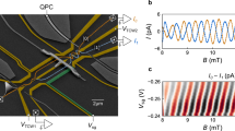 The device was fabricated in a GaAs/AlGaAs heterostructure hosting a 2DEG at 110 nm (140 nm for the device in Fig. 4, Supplementary Figs. 6 and 7) below the surface. The electron density and the mobility of the 2DEG are 2.8 × 1011 cm−2 and 9.0 × 105 cm2V−1 s−1 (2.1 × 1011 cm−2 and 1.9 × 106 cm2V−1 s−1 for the device in Fig. 4, Supplementary Figs. 6 and 7) at 4 K, respectively. The Schottky gates to define the quantum wires and the QPCs were defined by Ti/Au and the Ohmic contacts were defined by Ni/Ge/Au/Ni/Au alloy. A scanning electron microscope image of the device in Figs. 1–3 is shown in Supplementary Fig. 1. All measurements except for the ones in Fig. 1b, e were performed at the base temperature of a dilution refrigerator around 15 mK. Characterisation measurement in Fig. 1b was performed at room temperature and the one in Fig. 1e was performed at 4 K.