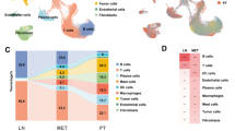 Recent studies employing single-cell RNA sequencing (scRNA-seq) have revealed LEC diversity in various organs such as the LN, skin, and intestine15,16,17,18,19. LN LEC subsets are located in distinct areas, such as the subcapsular sinus (SCS) and medullary sinus, and perform subset-specific functions20. LN LECs play crucial roles in regulating immune response through multiple mechanisms, such as controlling immune cell migration, transporting and storing antigens, and presenting antigens to immune cells20,21. Although LEC heterogeneity has been described by us and others in healthy conditions15,16,17 it has not been studied in detail in diseases such as inflammation and cancer. A recent study using scRNA-seq demonstrated that skin inflammation induces transcriptional changes in SCS floor LECs in mouse LNs16. However, it remains largely unknown how tumor metastasis to LNs affects LEC subsets in humans and how it impacts cancer metastasis and tumor immunity.