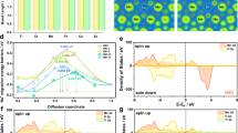 The powder X-ray diffraction (PXRD) patterns of the three samples were analyzed through Rietveld refinement, with atomic site occupancies in agreement with the calculated stoichiometry (Fig. 1k–m). Although there are differences in elemental selection and water content for these PBAs, all samples exhibit a monoclinic structure33. The crystallographic information for the three samples is detailed in Tables S3–S5. The insets show the corresponding charge density distribution diagrams of the (200) crystal planes based on the Rietveld refinement PXRD patterns of these PBAs. In M2-PBA, where the MHS sites are exclusively occupied by Mn and Fe, the electron density of the cyanide ligands shifts toward MHS ions. In M4-PBA, the partial substitution from Mn and Fe to Co and Ni at the MHS sites results in a symmetrical distribution of cyanide electron clouds between MHS and FeLS. The incorporation of Cu at MHS sites (M5-PBA) induces an electron density redistribution of the cyanide coordination structure toward the FeLS centers. Additionally, the cyanide electron clouds with a pear shape in M2-PBA and M5-PBA can be observed in the insets of Fig. 1k, m, while M4-PBA displays a uniform cyanide electronic distribution with an ellipsoidal shape, aligning with the intended distribution of cyanide electrons according to the results of first-principles calculations in Fig. 1a–j.