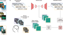 The experiment28 hinged on participants imagining their autobiographical experience of twenty common, experimenter-selected events (e.g., Wedding, Funeral, Festival, Exercising, Driving). To ensure there was a record of the participant-specific details of the mental images, experimentation began outside the scanner (Fig. 1A). Scenario prompts were read to participants, who were requested to imagine the scenario including their sensations, actions and feelings (e.g., on being told “Wedding” the participant might imagine a scene from their own wedding, including what they were doing, how they felt and who was there). To provide a participant-specific model of each mental image that would later be reconstructed from fMRI data, participants rated the importance of twenty sensory, motor, affective, social, cognitive and spatiotemporal features of experience to their mental image on a scale of [0 6] (see also ref. 30). Thus, each mental image scenario was modeled as a vector of 20 idiosyncratic numeric feature ratings (see the blue/yellow matrix in Fig. 1A). Supplementary Figs. 1 and 2 display mean and SD ratings across participants. The specific rating instructions are included in Supplementary Table 1.