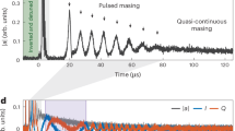 The transitions leading to masing within the gain medium are known and well documented in other works27,37,38,39, however, for the reader’s convenience, we reproduce a simplified Jablonski diagram in Fig. 1b. The 592-nm optical pump initially excites pentacene molecules from the ground state S0 to the excited state S1 through internal conversion (IC). About 62.5% of these molecules cross to triplet state T2 with spin polarization (known as intersystem crossing), then relax to sublevels X, Y, and Z within state T1. This creates a population inversion with ratios of 0.76:0.16:0.08. When the gain medium is placed within a microwave cavity resonant at approximately 1.45 GHz, stimulated maser transitions occur between the X and Z sublevels, depleting the population inversion and generating coherent microwave emission.