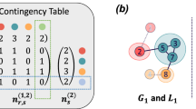 The adjusted mutual information can also be derived in a fully information-theoretic manner, as described in ref. 6. There it is shown that the subtracted term \({\langle {I}_{0}(c;g)\rangle }_{\{c| {n}^{(c)}\}}\) is precisely equal to the average cost of transmitting the contingency table when labelings are drawn from the uniform distribution. However, this distribution heavily favors contingency tables with relatively uniform entries, simply because there are many more labelings that correspond to uniform tables than to non-uniform ones. Real contingency tables, on the other hand, are often highly non-uniform, since applications of the mutual information focus on labelings that are somewhat similar to the ground truth (producing a non-uniform table). In such cases, the average used in the adjusted mutual information puts most of its weight on configurations that are very different from those that occur in reality, making it a poor representation of true information costs. The reduced mutual information considered in this paper, by contrast, deliberately allows for non-uniform tables by drawing them from a Dirichlet-multinomial distribution, and we argue that this is a strong reason to favor it over the adjusted mutual information. Nonetheless, in Section “LFR benchmark networks” we give results using both reduced and adjusted mutual information, and find fairly similar outcomes in the two cases.