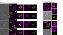 We used two knockdown approaches for PfVMP1. In the first approach, the endogenous PfVMP1 coding region was tagged in-frame at the 3’-end with cDDHA-glmS ribozyme coding sequence in P. falciparum D10 strain to obtain a trimethoprim- and glucosamine-inducible conditional knockdown line (PfVMP1dKD), which would express PfVMP1cDDHA fusion protein (Supplementary Fig. 3A). In the second approach, the endogenous PfVMP1 coding region was tagged in-frame with mAIDHA-PcDT5U/TIR1-Flag-T2A/HD/PcDT3’U sequence in P. falciparum 3D7 strain to generate an auxin-inducible knockdown line (PfVMP1AID), which would express PfVMP1AIDHA and TIR1-Flag-human DHFR proteins (Supplementary Fig. 3E). PfVMP1dKD and PfVMP1AID parasites showed desired modification of the target loci and expressed PfVMP1cDDHA and PfVMP1AIDHA (Supplementary Fig. 3B, C, F, G), respectively. However, both the parasites neither showed any noticeable depletion of the fusion protein nor any growth defect under knockdown conditions (Supplementary Fig. 3C, D, G, H). PfVMP1AID parasites expressed TIR1 (Supplementary Fig. 3I), which ruled out failure of auxin-inducible knockdown due to its absence. It is possible that the intrinsic nature and ER membrane localization of PfVMP1 rendered it refractory to degradation in case of cDD and glmS systems, as has also been reported for other proteins44,45. The auxin-inducible knockdown was quite effective for TgVMP1 in T. gondii but not for PfVMP1 in P. falciparum, which might be due to differences in the specificity of E3 ligases of P. falciparum and T. gondii for TIR1. Similar to our observation, previous studies showed limited success of the auxin-inducible system in P. falciparum46. Hence, we could not investigate PfVMP1 further in P. falciparum.