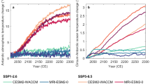 The ocean temperature, salinity and atmospheric temperature anomalies, and precipitation ratios result from two climate models: CESM2-WACCM (hereafter called CESM) and IPSL-CM6A-LR (hereafter called IPSL) for IPCC scenario SSP5-8.5 and SSP1-2.6 (Supplementary Fig. 1)20. These two models were selected from the climate model intercomparison project CMIP6 since they are two of the few models providing projections until 230020,57. In the high emission scenario, the ocean temperature anomaly is smaller in CESM than in IPSL, with a maximum difference of 1.2 °C at 2300. In the low emission scenario, the ocean temperature anomaly in CESM is smaller than in IPSL until 2100 and larger from 2100 onwards, with a maximum difference of 0.3 °C in 2200.