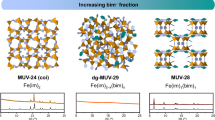 MOFs are highly ordered porous crystals assembled from metal nodes and organic linkers. Due to their high surface area, tunable structure, and versatile chemistry, MOFs have been widely studied for gas storage, separation, catalysis, and sensing12,13,14. Conventional methods such as hydrothermal or solvothermal synthesis can produce well-defined structures, but they often require high temperatures and long reaction times15,16. In recent years, attention has expanded from monometallic to bimetallic MOFs, where the incorporation of secondary metal centers enhances structural stability, increases the diversity of active sites, and enables improved electronic and catalytic properties. Achieving homogeneous distribution of two metal species is challenging because the differences in ionic radius, valence states, coordination numbers, and coordination geometries, as well as the variations in metal-ligand bond strength, can easily disturb balanced coordination and cause structural heterogeneity or phase segregation17,18. Therefore, developing a mild, controllable, and scalable synthesis strategy that enables precise bimetallic assembly is an important goal in MOF research.