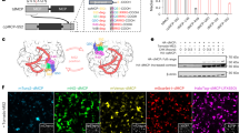 Buttressed by both CDR-H1 and CDR-H2, CDR-H3 binds near the center of the 8-bp dsRNA epitope, placing its N101 residue equidistant to both RNA strands (Fig. 3a, b). This prime location and flat, groove-parallel orientation of N101 allows it to descend deeper into the minor groove, making five hydrogen bonds to both strands. While the N101 main chain contacts the 2′-OH of U18, its side chain carboxamide concurrently engages the O2 of U9, N3 and 2′-OH of A17. Consistent with these numerous contacts, N101A strongly diminished RNA binding (Fig. 3c). To ask if a basic residue at this location might confer higher levels of RNA binding than the wild type, we replaced N101 with an arginine, which is frequently found to mediate RNA interactions such as forming arginine forks with HIV TAR and 7SK RNAs26,27. Compared to N101A, N101R further compromised RNA binding, suggesting that a bulky basic residue does not make favorable interactions at this location. Immediately adjacent to N101 is P102, which redirects the CDR-H3 loop trajectory and further stacks with the functionally important Y50 (Fig. 3a, b). P102A drastically reduced RNA binding, suggesting its functional importance. W104 closely follow N101 and P102, protrudes into the light chain region, and stacks with W56 of CDR-L2, which in turn stacks with Y38 of CDR-L1 (Figs. 2f, 3a, b). W104 is also well positioned to stack with Y55 of CDR-L2, allowing W104 to stabilize an aromatic network among the LC CDRs. Consistent with this structural role at the HC-LC interface, a W104A substitution severely compromised dsRNA binding (Fig. 3c, d).