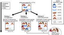 In contrast to mean temperature effects, short-term temperature fluctuations had surprisingly modest impacts on thermal trait composition. Neither the overall trait diversity (measured by hypervolume analysis) nor the variation in thermal tolerance breadth showed substantial changes with increasing daily temperature variability (Fig. 2d, e and Supplementary Fig. 5). The average thermal tolerance breadth of species showed only a slight decrease under greater short-term variability (Fig. 2f). While we observed minor shifts toward warm-adapted species and away from cold-adapted species, the relative proportions of thermal strategies remained largely stable (Fig. 3c, d).