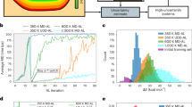 UQ plays a key role in active learning for training set construction. The quality of the training set is particularly crucial for MLIP, as the accuracy of MLIPs can significantly decrease when encountering unseen atomic configurations, leading to the collapse of simulations16. Figure 4a illustrates a typical active learning workflow for MLIPs, where the data points with high uncertainty are iteratively explored to enrich the training set. In addition, uncertainty-driven dynamics (UDD) simulation39 can be employed to enhance sampling efficiency. In UDD simulations, the potential energy surface is modified so that the atomic configurations with higher uncertainties are assigned lower potential energies, and consequently, these structures become more accessible, as indicated in Fig. 4b. The implementation of UDD simulation with eIP is provided in the “Methods” section.