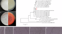 The cycle threshold (Ct) values of F. oxysporum TEF1 (translation elongation factor 1-α) and F. anhuiense-specific sequence fragment were determined by quantitative PCR (qPCR). Primer sequences are provided in Supplementary Table 17. qPCR efficiency ranged from 90 to 105%. To obtain pathologically meaningful data, the pathogen quantification from qPCR result was converted to colony-forming unit (CFU). To establish a standard curve correlating Ct values with colony counts, a starting F. oxysporum spore suspension at 2 × 10⁸ CFU/mL (Supplementary Fig. 13A) and F. anhuiense K5 cell suspension at 1.25 × 109 CFU/mL (Supplementary Fig. 13B) were subjected to serial dilutions, followed by DNA extraction and qPCR analysis for each dilution gradient.