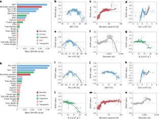 Java, MATLAB and Python Codes for the analysis of these data are available via GitHub at https://github.com/YCY-github-YCY/Forest (ref. 108). The Landsat-based NDVI and NDII, and digital elevation model (including elevation, slope and aspect) are calculated on GEE, which is available at https://code.earthengine.google.com/.