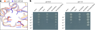 a, Functional characterization of the A117S/V267I mutant in the E. coli Δcan strain at pH 9.0. b, Functional characterization of chimeric NAR1.1/NAR1.5 in the E. coli Δcan strain at pH 7.0.