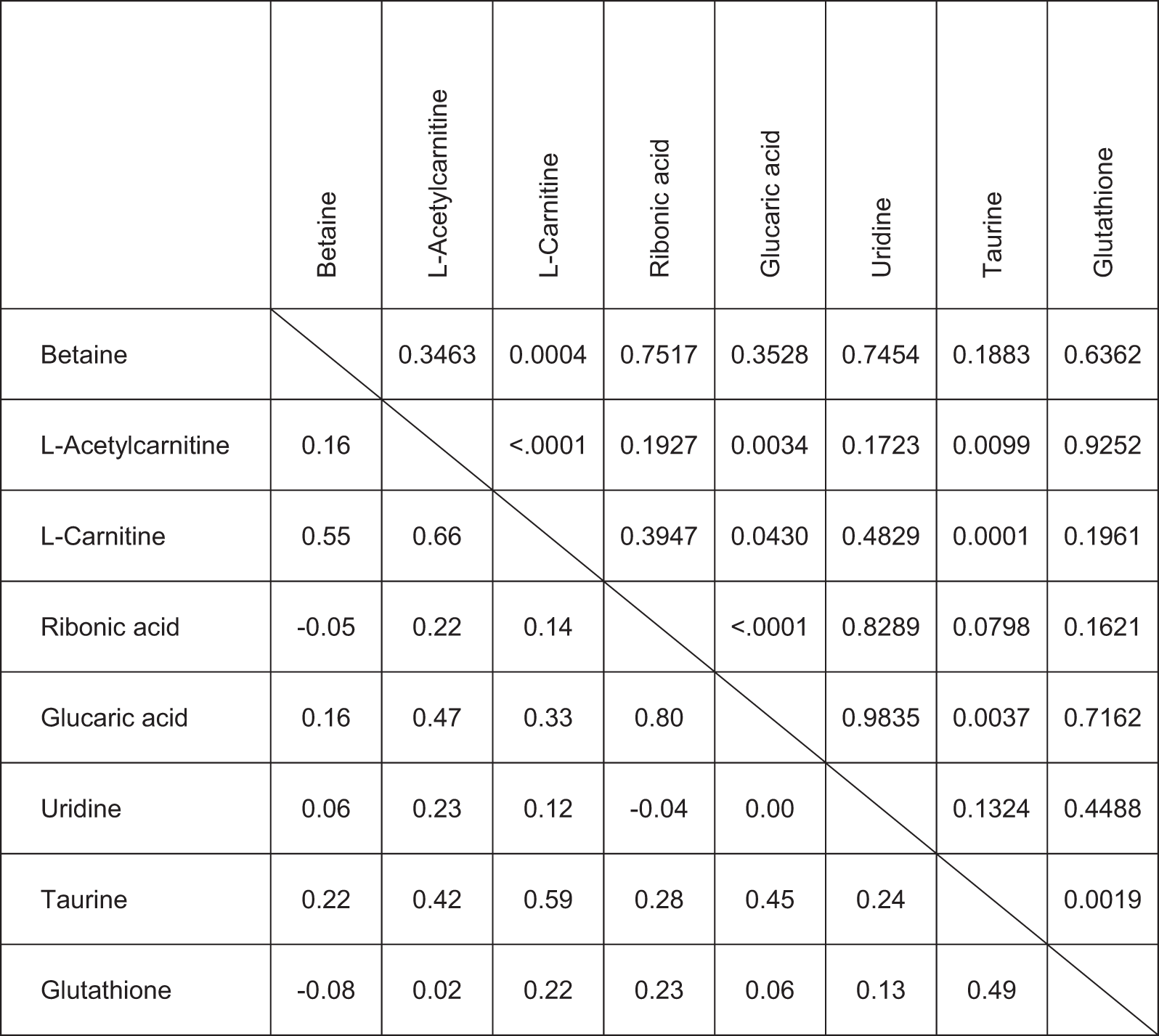 Table 3 Correlation coefficient between metabolites in the aqueous humor.