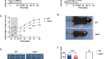 In our previous study, we demonstrated that the gut microbiota of Dusp6-deficient (D6KO) mice has a dramatic effect on protecting fecal microbiota transplanted (FMTed) germ-free mice from diet-induced obesity28. However, the specific bacterial species or consortia that can exert obesity-resistant effects in Dusp6-deficient mice have not been identified. Interestingly, by performing qPCR analyses on fecal DNA samples, we noticed that Dusp6-deficient mice had a lower abundance of A. muciniphila in the gut microbiota when compared to WT mice (Fig. 1a). This observation led us to investigate whether Dusp6 plays a role in shaping gut microbiota into a cold-adapted composition, which has also been shown to have a significant feature of reduced A. muciniphila19. To further determine whether the downregulation of intestinal DUSP6 is a cold-induced phenomenon in mice, we assessed changes in ileal DUSP6 expression in mice before, during, and after cold exposure. The results showed that cold stress significantly downregulated ileal DUSP6 expression after 7 days of cold stimulation (Fig. 1b, c). The 7 day cold exposure did not result in a significant change in the body weight of the exposed mice (Supplementary Fig. 1a). The downregulation of ileal DUSP6 was reversed after the cold stress was removed (Fig. 1c). The cold-induced decrease in Dusp6 expression was further verified through qRT-PCR and immunohistochemistry analyses (Fig. 1d, e). During the cold (6 °C)-room temperature (RT) transition (CR transition), cold-induced Ucp1 expression in perigonadal WAT (pWAT) was rapidly reversed after the mice were returned to RT condition (Fig. 1f). When mice undergoing CR transition were treated with the DUSP6 inhibitor (E/Z)-BCI (BCI) (IP injection of BCI before the end of cold treatment) to maintain the suppressed state of DUSP6 after the cold stress was removed (daily IP injection of BCI during the CR period) (Supplementary Fig. 1b), BCI treatment significantly maintained the Ucp1 expression in the pWAT of BCI-CR mice even when cold stimulation was terminated (Fig. 1g). No significant difference in body weight was observed between the Vehicle-CR and BCI-CR mice (Supplementary Fig. 1c). To confirm the off-target effects of BCI on adipose browning, we administered BCI treatment to D6KO mice using the same protocol as for BCI-CR mice. The results showed that BCI treatment did not significantly affect Ucp1 expression in the pWAT, inguinal WAT (iWAT) or BAT of D6KO mice (Supplementary Fig. 1d–f). Through qRT-PCR analyses, we confirmed that Dusp6 expression was not reduced in the pWAT, liver, or BAT of mice exposed to cold conditions (Fig. 1h–j). Conversely, we observed a significant cold-induced increase in Dusp6 expression in BAT (Fig. 1j). These findings indicate that the cold-induced decrease in Dusp6 expression is specific to intestine.