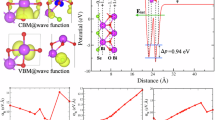 where Ha is the atomic contribution Hamiltonian term, c.c. denotes the complex conjugate, ui and εi are the eigenstate and eigenenergy corresponding to state i at k0, and q = k−k0. For BiTeI, the same character of the conduction band and valence band leads to a large \(\langle u_{{\mathrm {CB}}}\left| {H^{\mathrm {a}}} \right|u_{{\mathrm {VB}}} \rangle\) term. Here, uCB and uVB are for the conduction band and valence band, respectively. While in practice, the band structure has some polar character, with the valence bands having more Te character and the conduction bands having more Bi character, the qualitative expectation holds. In this way, a smaller \(\varepsilon _m - \varepsilon _n\) is expected to be beneficial for a larger energy splitting, which further strengthens the Rashba effect. As shown in Table 1, most systems with smaller band gaps have larger αRs.