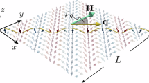 Here, \(\vec h\left( t \right)\) is the effective field associated with thermal energy, \(\varepsilon ^A\), \(\varepsilon ^K\), and \(\varepsilon ^{DM}\) are the exchange energy, the anisotropy energy and the DM interaction energy, and \(\vec H^D\) is the demagnetizing field. \(M_s\), \(A_{{\mathrm{ex}}}\), \(K_u\), \(D\), k, T, \(v\), \(\delta (\tau )\), and \(\delta _{ij}\) are the saturation magnetization, the exchange stiffness constant, the uniaxial magnetic anisotropy energy density, the DM exchange constant, the Boltzmann constant, temperature, the volume of the cell, the Dirac delta function, and the Kronecker delta, respectively. Note that \(K_{{\mathrm{eff}}} = K_{\mathrm{u}} - M_s^2/\left( {2\mu _0} \right).\) The demagnetizing field is calculated numerically.