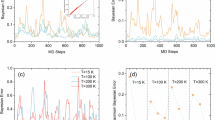 Figure 2d, e show the phase diagrams of BaTiO3 obtained from the effective Hamiltonian simulation with parameters from the conventional parameterization and from on-the-fly learning, respectively. The supercell size is chosen to be 12 × 12 × 12 (corresponding to 8640 atoms). At high temperatures, all components of the dipolar mode are zero, characterizing a paraelectric cubic (C) phase. With the decreasing of temperature, the C phase sequentially transforms into ferroelectric tetrahedral (T), orthogonal (O), and rhombohedral (R) phases, characterized by one, two, and three non-zero components of the dipolar mode, respectively. Such C-T, T-O, and O-T phase transition sequences simulated by the effective Hamiltonian with both sets of parameters are correctly reproduced and are consistent with experimental results7,9. For the calculations with the parameters from conventional FP calculations (Fig. 2d), the C-T, T-O, and O-T phase transition temperatures are about 280, 230, and 200 K, respectively. While for the calculation with on-the-fly learning parameters, they are 380, 270, and 220 K, respectively, much closer to the experimental values of 403, 278, and 183 K, respectively9. Note that such improvement of critical temperature mainly originates from the inclusion of new anharmonic intersite interactions. More precisely, it is found that the following two terms play important roles in the improvement of phase transition temperatures, namely,