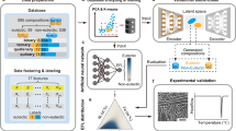 Recently, machine learning (ML) has emerged as a transformative tool for accelerating alloy discovery, leveraging its ability to uncover complex relationships between alloy compositions and targeted phases or structures without relying on exhaustive theoretical calculations18,19,20. By incorporating descriptors derived from DFT or empirical physicochemical parameters, ML approaches have been successfully applied to the prediction of phase formation in intermetallic compounds with B221, L1022, L1223, Heusler24 and Laves25,26 structures. However, DFT-calculated formation enthalpies, often used as a reference for phase stability, typically neglect finite-temperature effects and fail to capture the metastable nature of many intermetallics23. Moreover, prior studies have primarily focused on binary and ternary systems, limiting their applicability to high-dimensional compositional spaces. To address this, Qi et al.27 developed a model to predict the principal phases of MPEIs (B2, Heusler, and Laves) using an extensive set of over 2500 candidate descriptors and complex feature engineering strategies. Despite achieving reasonable accuracy, the model lacks the ability to actively generate new B2 compositions or exclude multiphase regions28. Recently, Shargh et al.29 further introduced a deep learning framework involving 30 descriptors and deep architectures (10–13 hidden layers with 44–85 neurons), which improved classification accuracy but lacked experimental validation and showed limited generalizability across diverse alloy systems. Compared to ML-assisted studies on FCC, BCC, or eutectic HEAs20,30,31,32, the application of data-driven methods to the design of MPEIs with well-defined crystalline structures remains relatively underexplored, especially in the context of generative models and physical interpretability.