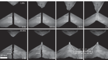 Among the granular media listed in Table 1, the alumina beads, silica sand No. 5, and Toyoura sand exhibited mass flow with some periodic intermittency effects40, particularly observed under the condition of relatively low-gravity (see Data Availability section). The intermittency is due to the partially generated arch above the orifice40, which is formed by the solid friction forces between the particles and/or walls but never leads to permanent clogging. The arch collapses as the partial flow continues because the bearing force at the arch generated between the particles becomes smaller than the arch weights (total particle mass times gravity), and the stick-slip effect occurs between the particles40.