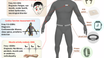 Several epidermal devices have been introduced to measure the sEMG.83,122 Figure 5a shows such an epidermal EMG sensor that wears on human body.83 An EMG sensor (including the measurement, reference and ground electrode), a temperature sensor, a strain gauge as well as several stimulation electrodes are integrated on the device. The temperature sensor measuring the skin temperature can be helpful in muscle fatigue detection. And the strain gauge measures the deformation of the muscle. The structure of the integrated device is simple. It is consist of three layers of insulating polyimide and two layers of metal traces, i.e., one is the measuring layer and the other is the stimulating layer. To demonstrate the performance of both the sensing and stimulating electrode, the M-wave signal was recorded with 1 Hz and 50 V stimulation, as shown in Fig. 5b.