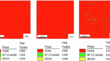 The total current density is also calculated by the sum of the cathode and anode current densities. Besides, the homogeneous reactions involved in the droplets and corresponding reaction equilibrium constants were summarized in Supplementary Table S1. The mass transfer process in the droplet was governed by Nernst-Planck equation, where the diffusion coefficients of the species in the droplet were listed in Supplementary Table S2. Particularly, Fe(OH)2 in the aqueous phase (Fe(OH)2,aq) firstly generated when Fe2+ reacted with OH−. When the local concentration of Fe(OH)2,aq exceeded its solubility in the droplet, Fe(OH)2,s precipitation occurred to form corrosion products on the electrode surface. The steric hindrance effect of the corrosion product precipitation was described by the surface coverage (\(\theta\), \(\theta \le 1\))52,53, which was artificially defined in Eq. (4). The inhibition effect of metal dissolution caused by corrosion product precipitation is modeled by multiplying the local current density of the anodic reaction by the fraction of uncovered surface (1-θ).