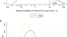 Supplementary Fig. 1 shows the risk (expressed as an odds) according to age for the basic PREDICT-PD algorithm and the revised risk according to age for the enhanced PREDICT-PD algorithm (based on the risk according to age categories in the MDS criteria)2,3. The revised equation for estimating age-related risk is given by Eq. (1).