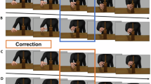 Making an error triggers specific electroencephalogram (EEG) signatures such as mid-frontal theta increases, delta power increases, and error-related negativity and positivity21,22,23,24. While smaller in amplitude and higher in latency25, similar signatures are also triggered when observing action errors26. Specifically, observing errors by others causes increased mid-frontal theta and frontal error-related negativity (oERN) and positivity (oPe). These changes are seen when observing an error committed by another27, by a partner during motor interactions28,29, and by an embodied virtual arm observed from a first-person perspective30,31 (1PP). The observation-related error-monitoring components show a smaller amplitude and delayed latency than the execution-related components25. Throughout this article, we will use Pe and ERN to indicate error-execution-related positivity and error-negativity findings, respectively, and oPe and oERN to indicate error-observation-related findings.
