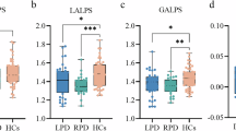 There were several limitations when interpreting the results of the present research. First, both CSF secretion and glymphatic function are regulated by circadian rhythms41,42. Although we primarily collected MRI data during the daytime, we have not explored the relationship between the ALPS index and the time of scanning. Second, the ALPS index measures glymphatic activity in a right-to-left direction at the level of the lateral ventricles. Whether it can represent the global glymphatic function requires further corroboration, despite recent research verifying its correlation with classic glymphatic measures7. Third, in the pPD and dnPD cohorts, the number of subjects with followed up data was relatively small. To advance the understanding of the causal relationship between glymphatic function and disease progression, particularly in the transition from prodromal phase to clinically diagnosed phase, future research demands larger longitudinal cohort studies and multiple time-point follow-ups. Lastly, although we used PSN-FW as an alternative to DAT imaging, it is crucial to note that PSN-FW may reflect heterogeneous pathology, such as neuroinflammation, rather than solely dopamine neuron loss. The absence of direct DAT imaging limited the definitive dissociation of glymphatic effects from dopaminergic contributions. Future studies integrating DAT imaging with multi-modal MRI are necessary to corroborate these preliminary findings.