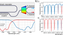 Then, quantum state tomography was performed to measure the state density matrix \(\hat \rho\). The ideal density matrix of the maximally entangled state in Eq. (3) and the measured density matrix of the output state from frequency channels ±8 are shown in Fig. 4b, c, respectively. The fidelity is defined as \(F = {\mathrm{Tr}}\left( {\hat \rho _{{\mathrm{mea}}}\hat \rho _{{\mathrm{ideal}}}} \right)\), where \(\hat \rho _{{\mathrm{ideal}}}\) is the ideal density matrix. We obtained a net fidelity of 0.96 ± 0.01 (raw fidelity 0.93 ± 0.01), confirming that the generated quantum state is of high quality and very close to the ideal maximally entangled state. The deviation of the fidelity from unity was mainly due to the errors in rotating the angles of the wave plates. Through use of a cascading on-chip Mach-Zehnder interferometer with thermal tuning to regulate the energy distribution and phase of different transverse-modes, any level of biphoton entanglement can be achieved.