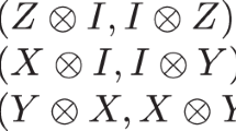 where \(x^{\prime} \,=\,WRx\,\ne \,0\) and \(y^{\prime} \,=\,W{L}^{-1}y\,\ne \,0\). The last equality in Eq. (5) follows from the assumption that π is Pauli mixing. Thus \(\pi ^{\prime}\) is a convex linear combination of Pauli mixing distributions, that is, \(\pi ^{\prime}\) itself is Pauli mixing.