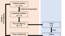 According to our analysis above, the stability of the linearised system will be satisfied provided γM−1≤∣λ0∣/∥FM∥. For the discretised PDE here we have λ0 = c and ∥FM∥ = b. That means if \(\gamma \le \|{{\bf{u}}}_{{\rm{in}}}{\|}_{\max }\), then the stability condition in Eq. (97) implies the stability of the matrix after Carleman linearisation. That condition is needed in order to be able to use the ODE solver of Ref. 3, but it will mean that the rescaling gives a smaller probability of success for obtaining the correct component of the Carleman vector than if we had the stability condition R < 1.