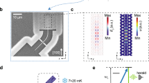 In addition to the high spin-phonon entanglement fidelity, the large cooperativity also leads to the capability of high-precision single-shot readout for the spin state. When the frequency offset of the laser drives is far detuned from the spin-phonon detuning, i.e., ∣ω1 − ω2∣ ≫ ∣ωs − ωm∣, the coupled spin-phonon system resides in the dispersive regime, where the spin state of the defect induces a 2χ frequency shift of the phonon resonance with \(\chi ={g}^{{\prime} 2}/\left({\omega }_{1}-{\omega }_{2}-{\omega }_{s}+{\omega }_{m}\right)\). In such a scenario, by probing the cavity phonon response, we are able to distinguish between the defect spin states as a consequence of the spin-phonon coupling. Additionally, such a system provides the required optomechanical interaction where single-shot readout is also attainable through optomechanical-induced transparency (OMIT), as discussed in the recent report63. Here, we have engineered the optical resonance into the telecom regime to enable potential optical communication via the optomechanical channel. It is important to note that the optical resonance of the cavity can also be tailored closer to the divacancy transition energy at ~1100 nm by slightly reducing the size of the OMC unit cells. In this way, we can enhance the optical interaction and achieve faster operation speeds in the Raman scheme. Thanks to the Raman facilitated coupling scheme, we are able to achieve both individual control and readout in the spin ensemble since excited-state transitions of the spins are spectrally distinguished due to the unavoidable inhomogeneity in solids.