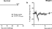 Buttigieg, K. R. et al. A novel vaccine against Crimean-Congo Haemorrhagic Fever protects 100% of animals against lethal challenge in a mouse model. PLoS One 9, e91516–e91516 (2014).